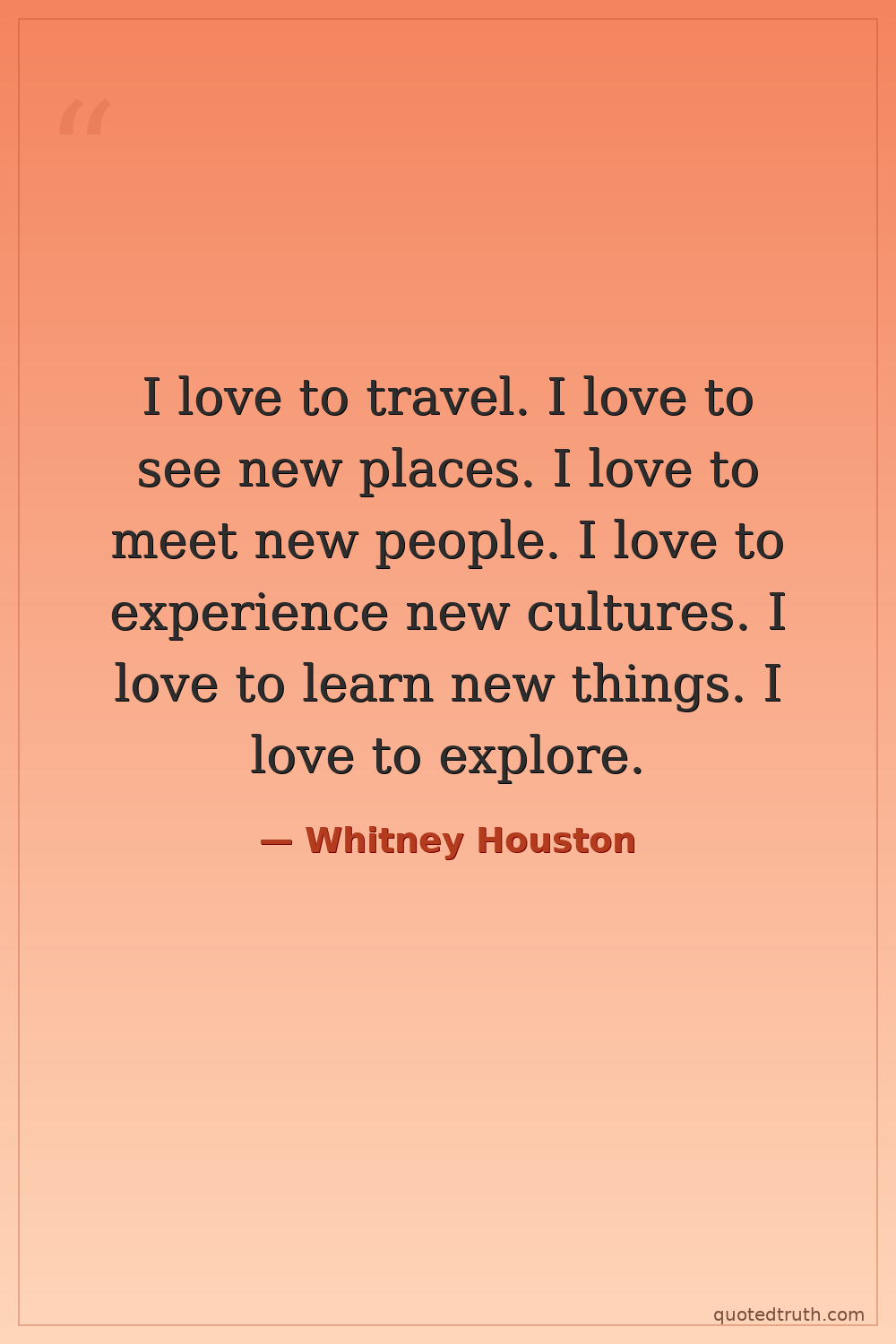 I love to travel. I love to see new places. I love to meet new people. I love to experience new cultures. I love to learn new things. I love to explore.