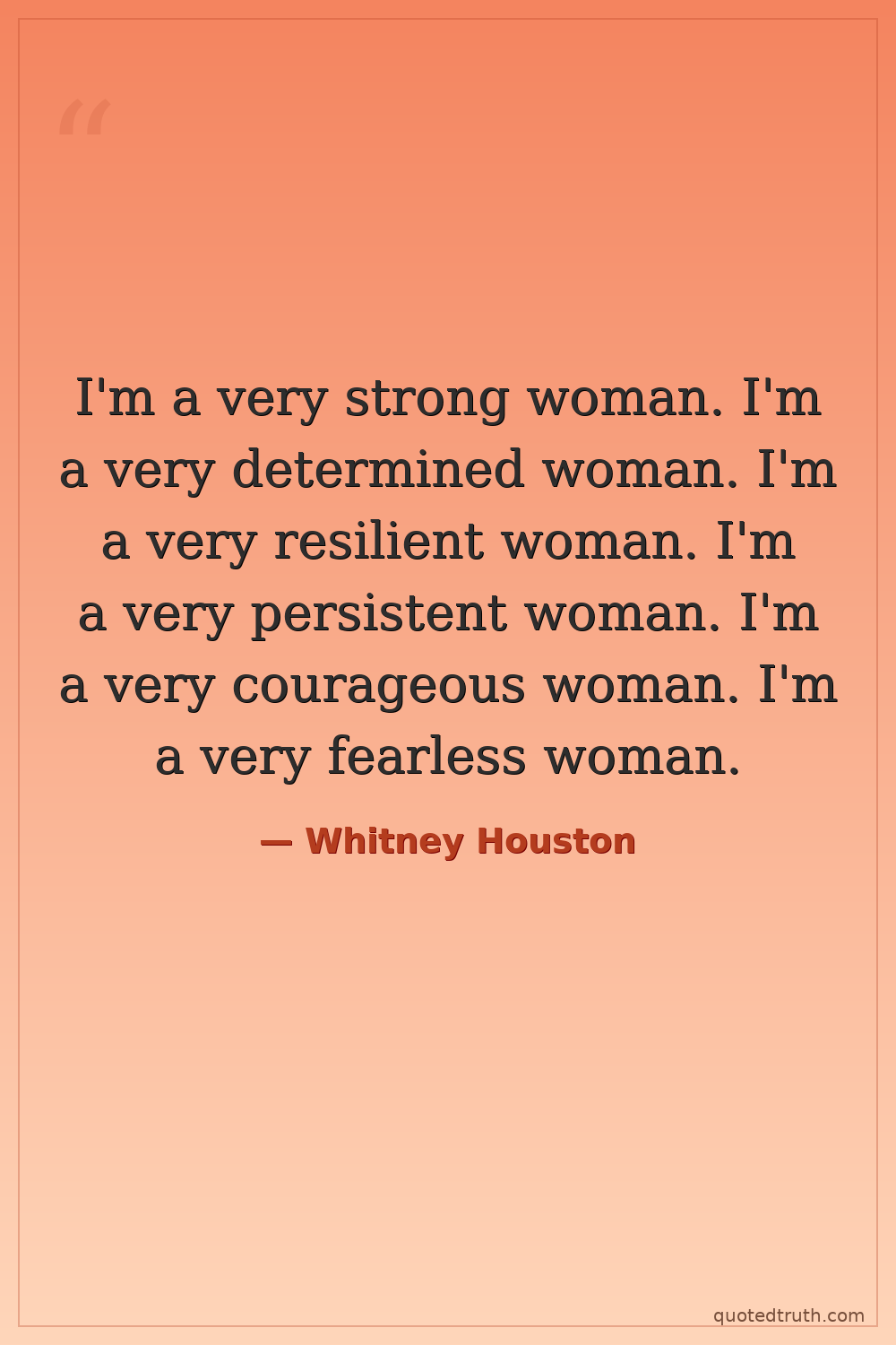 I'm a very strong woman. I'm a very determined woman. I'm a very resilient woman. I'm a very persistent woman. I'm a very courageous woman. I'm a very fearless woman.