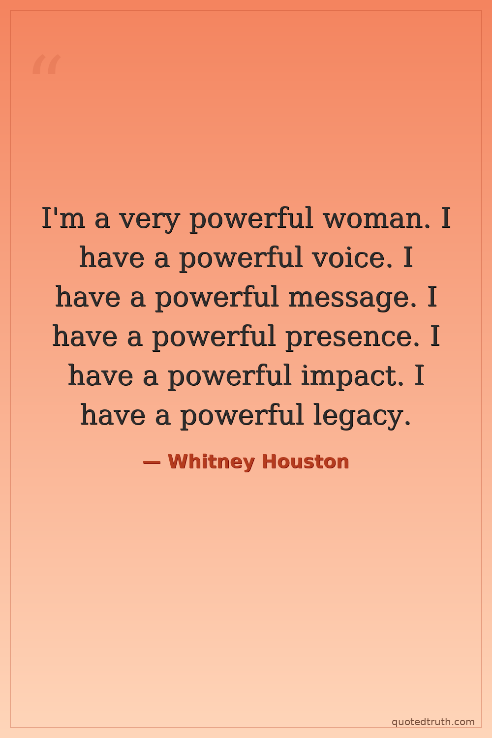 I'm a very powerful woman. I have a powerful voice. I have a powerful message. I have a powerful presence. I have a powerful impact. I have a powerful legacy.
