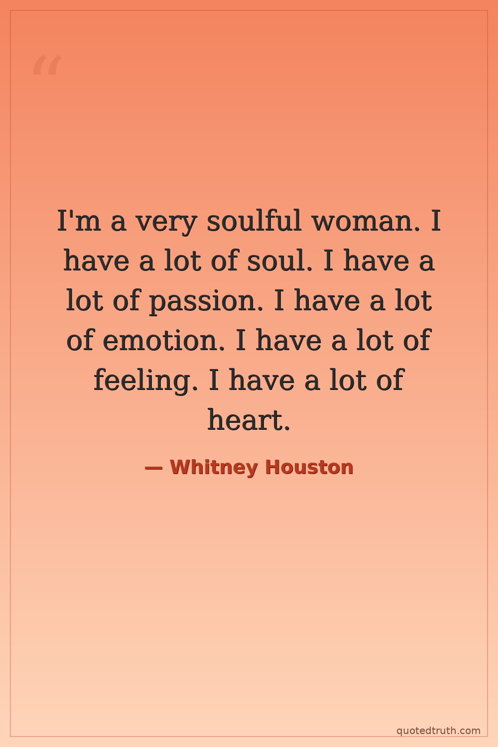I'm a very soulful woman. I have a lot of soul. I have a lot of passion. I have a lot of emotion. I have a lot of feeling. I have a lot of heart.