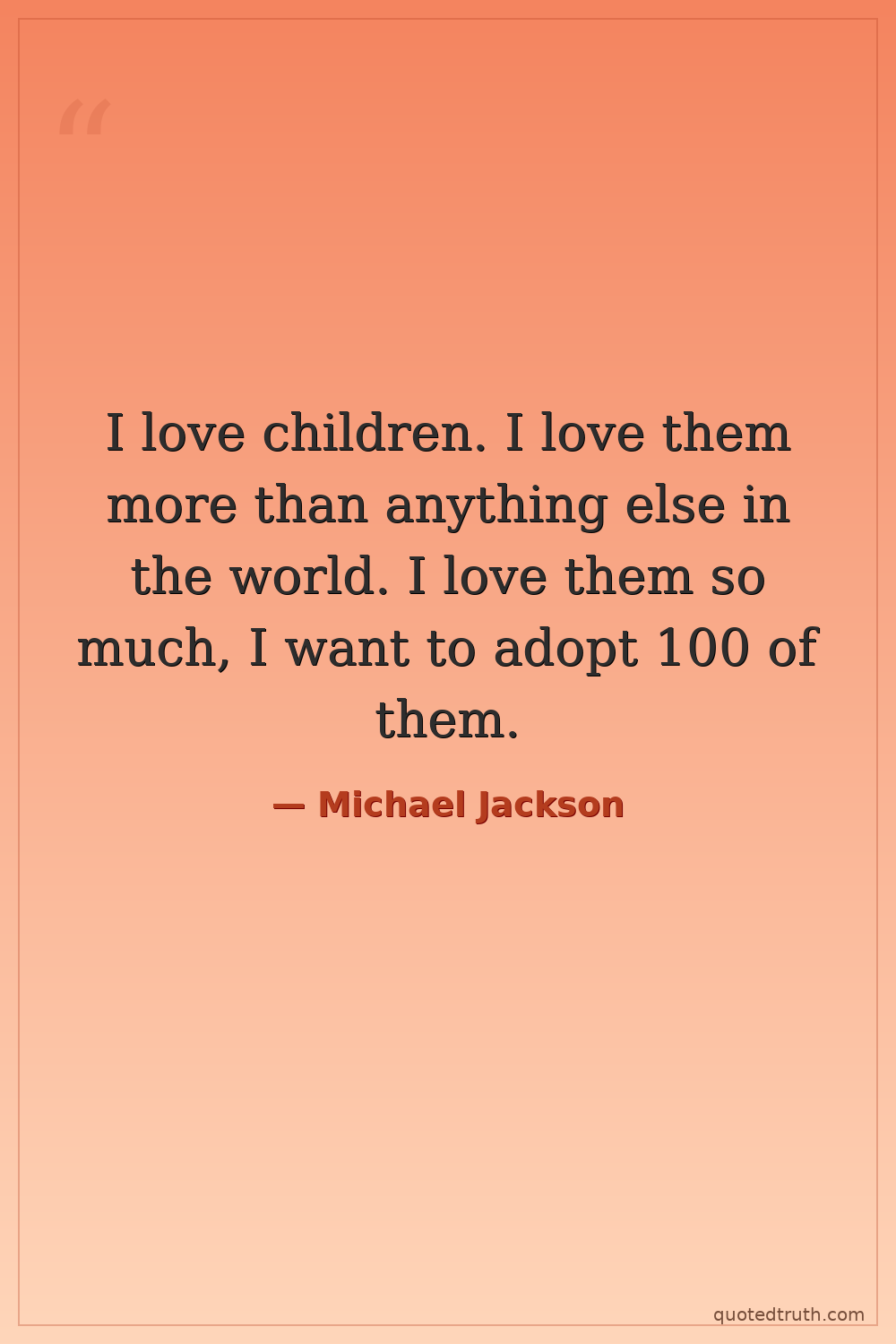 I love children. I love them more than anything else in the world. I love them so much, I want to adopt 100 of them.
