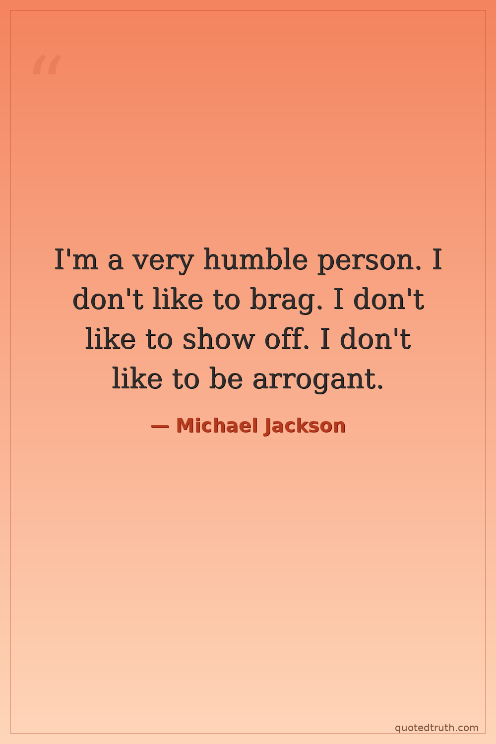 I'm a very humble person. I don't like to brag. I don't like to show off. I don't like to be arrogant.