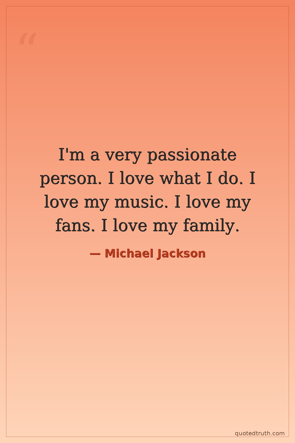 I'm a very passionate person. I love what I do. I love my music. I love my fans. I love my family.