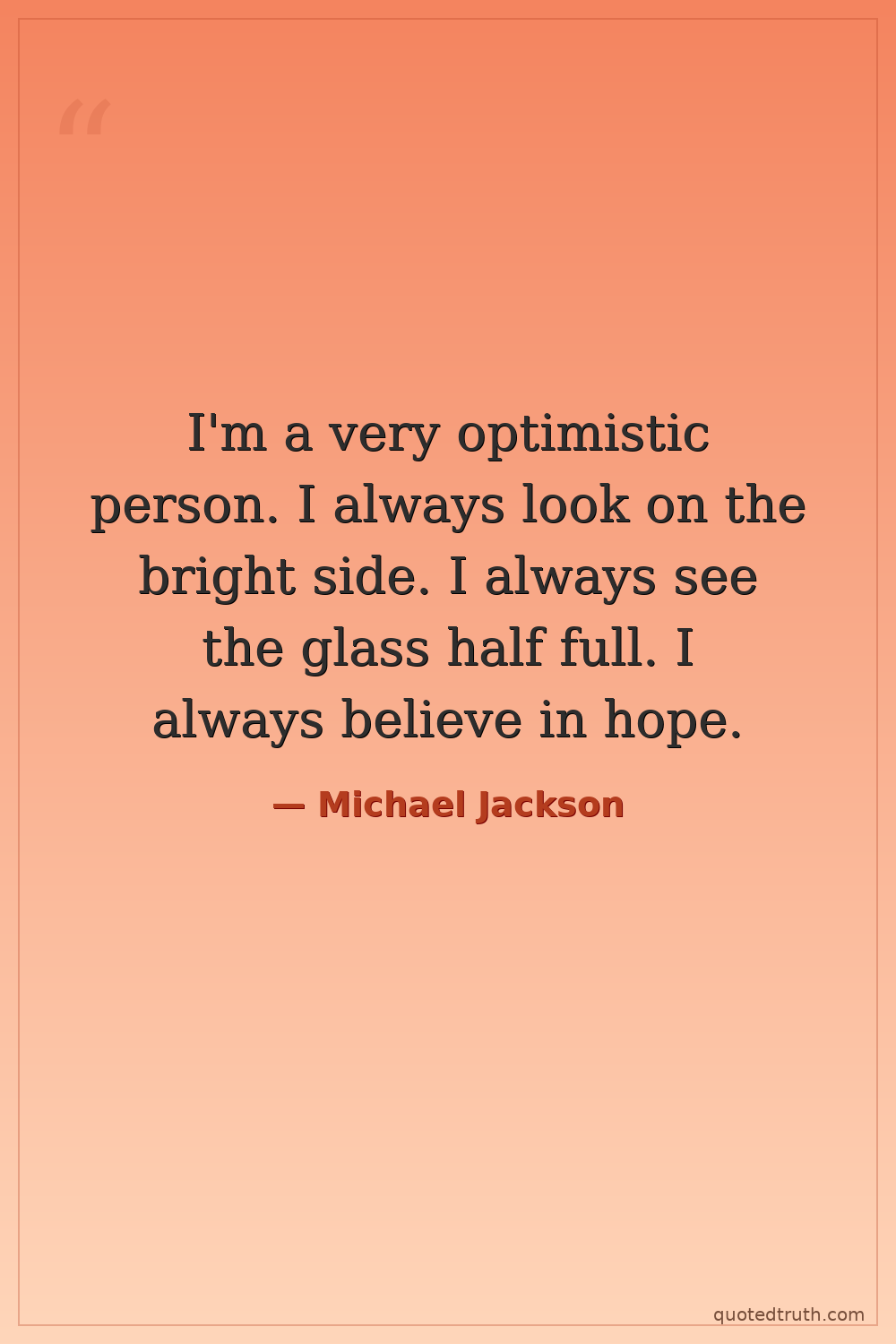 I'm a very optimistic person. I always look on the bright side. I always see the glass half full. I always believe in hope.