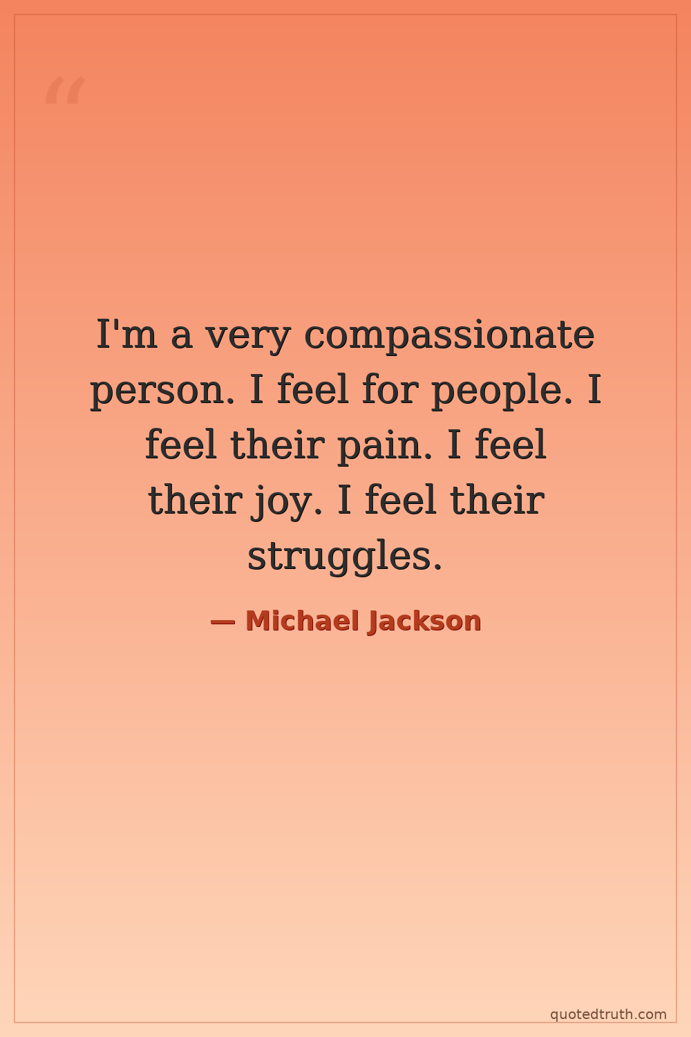 I'm a very compassionate person. I feel for people. I feel their pain. I feel their joy. I feel their struggles.