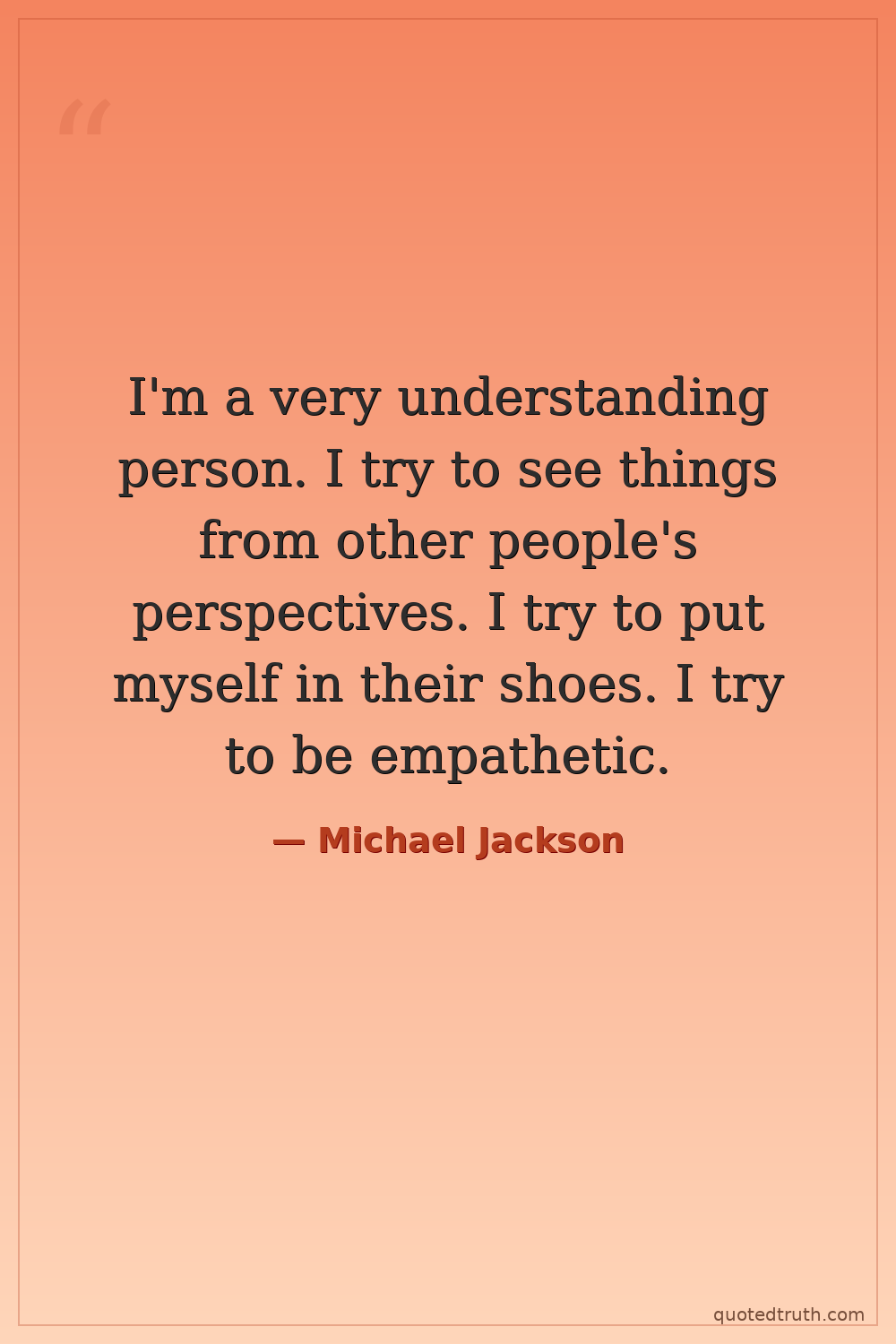 I'm a very understanding person. I try to see things from other people's perspectives. I try to put myself in their shoes. I try to be empathetic.
