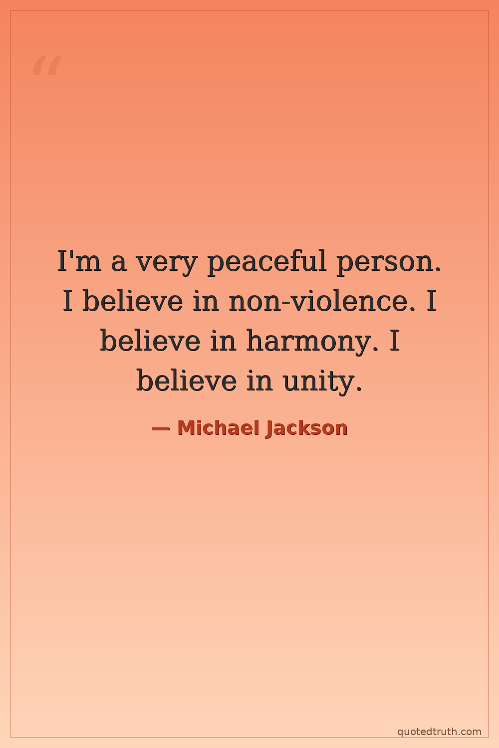 I'm a very peaceful person. I believe in non-violence. I believe in harmony. I believe in unity.