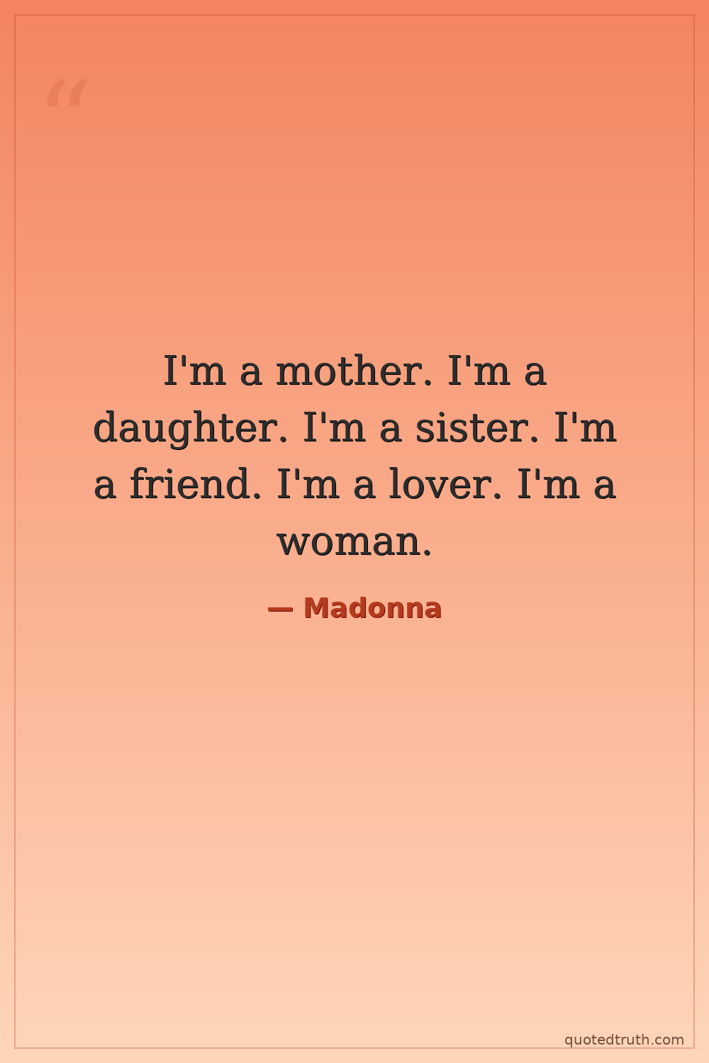 I'm a mother. I'm a daughter. I'm a sister. I'm a friend. I'm a lover. I'm a woman.