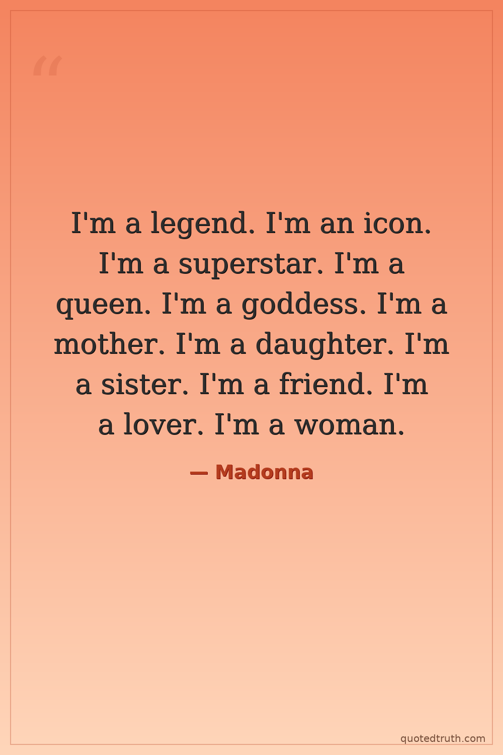 I'm a legend. I'm an icon. I'm a superstar. I'm a queen. I'm a goddess. I'm a mother. I'm a daughter. I'm a sister. I'm a friend. I'm a lover. I'm a woman.