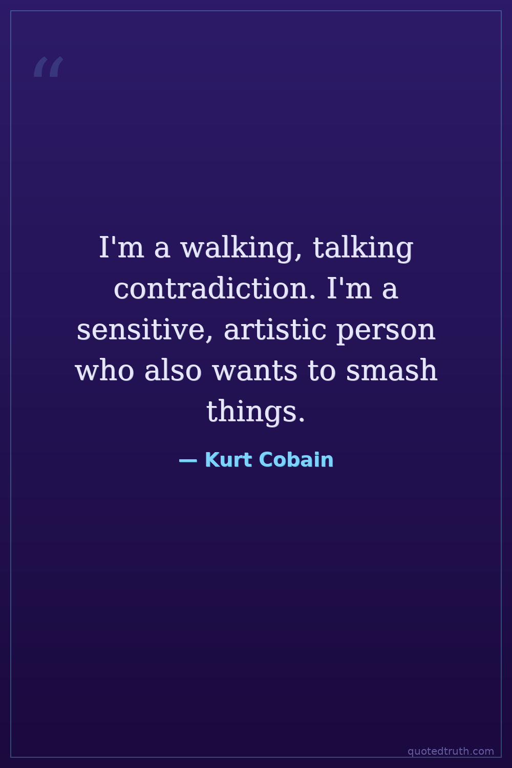 I'm a walking, talking contradiction. I'm a sensitive, artistic person who also wants to smash things.