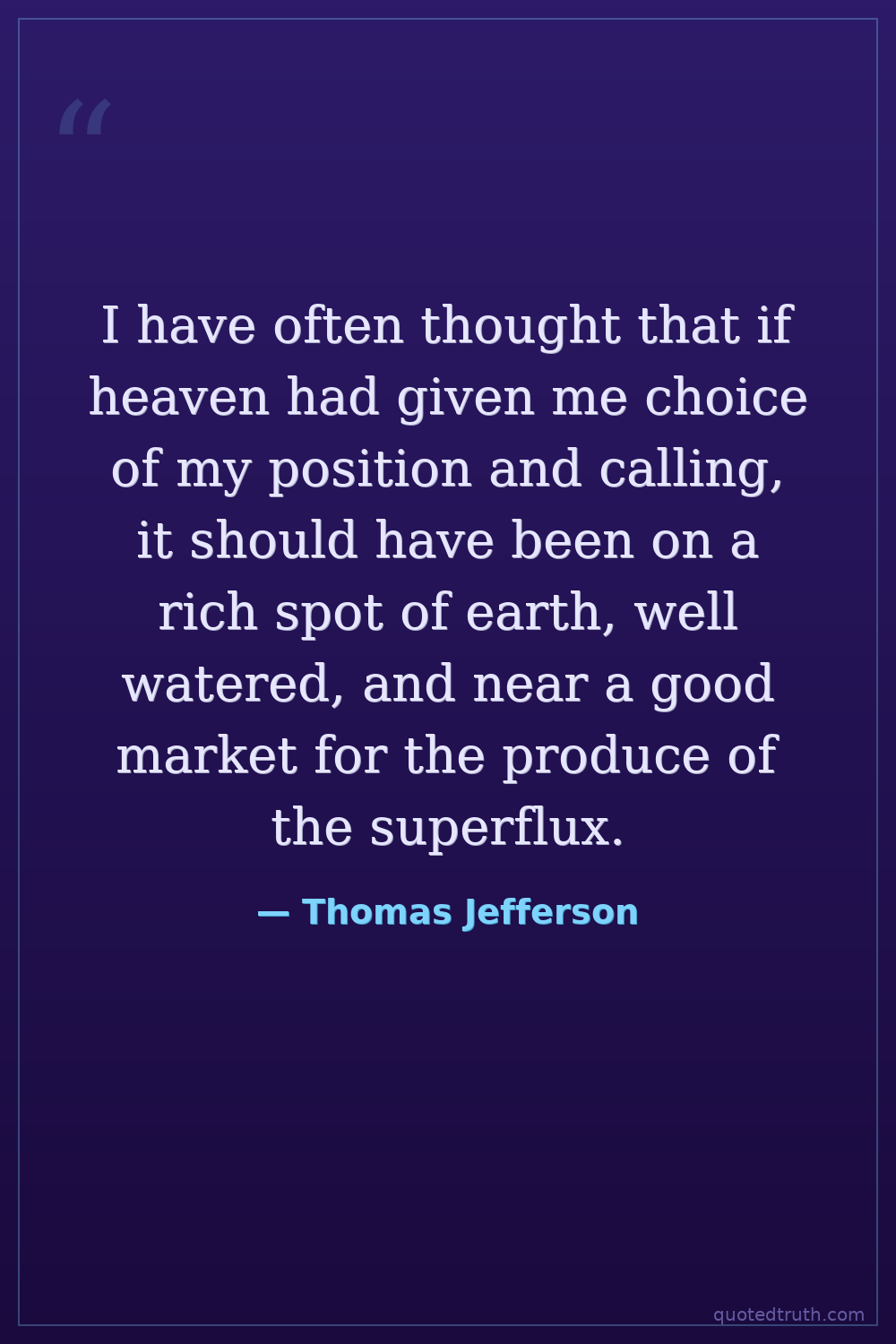 I have often thought that if heaven had given me choice of my position and calling, it should have been on a rich spot of earth, well watered, and near a good market for the produce of the superflux.