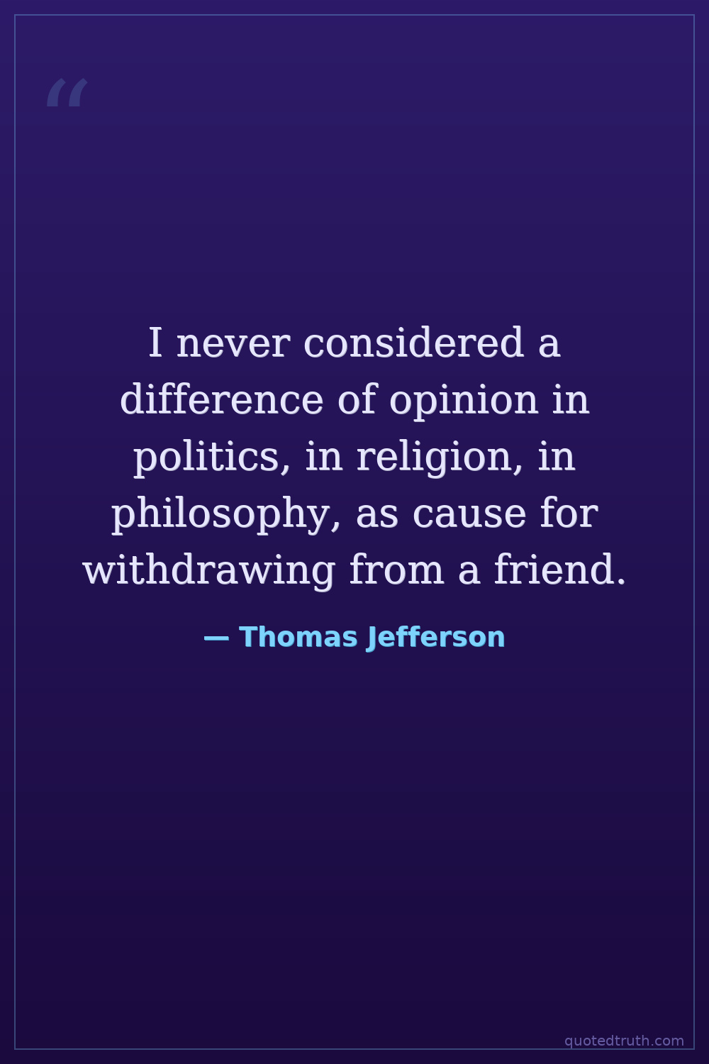 I never considered a difference of opinion in politics, in religion, in philosophy, as cause for withdrawing from a friend.