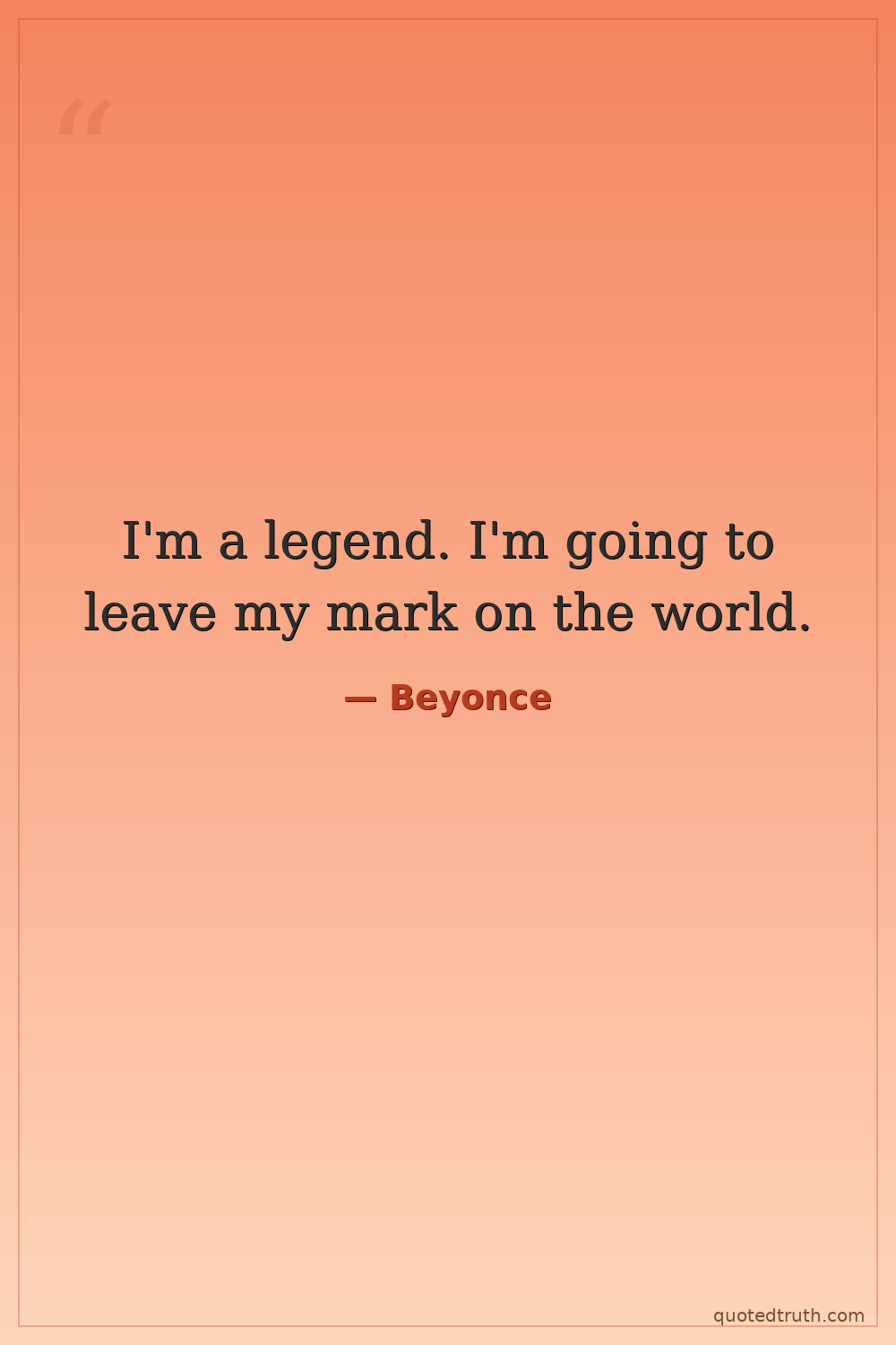 I'm a legend. I'm going to leave my mark on the world.