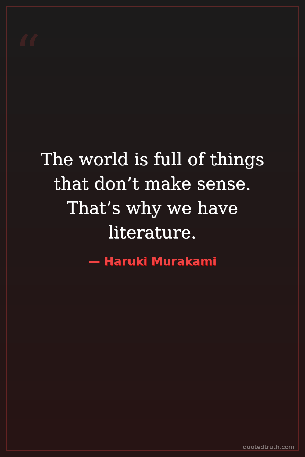 The world is full of things that don’t make sense. That’s why we have literature.