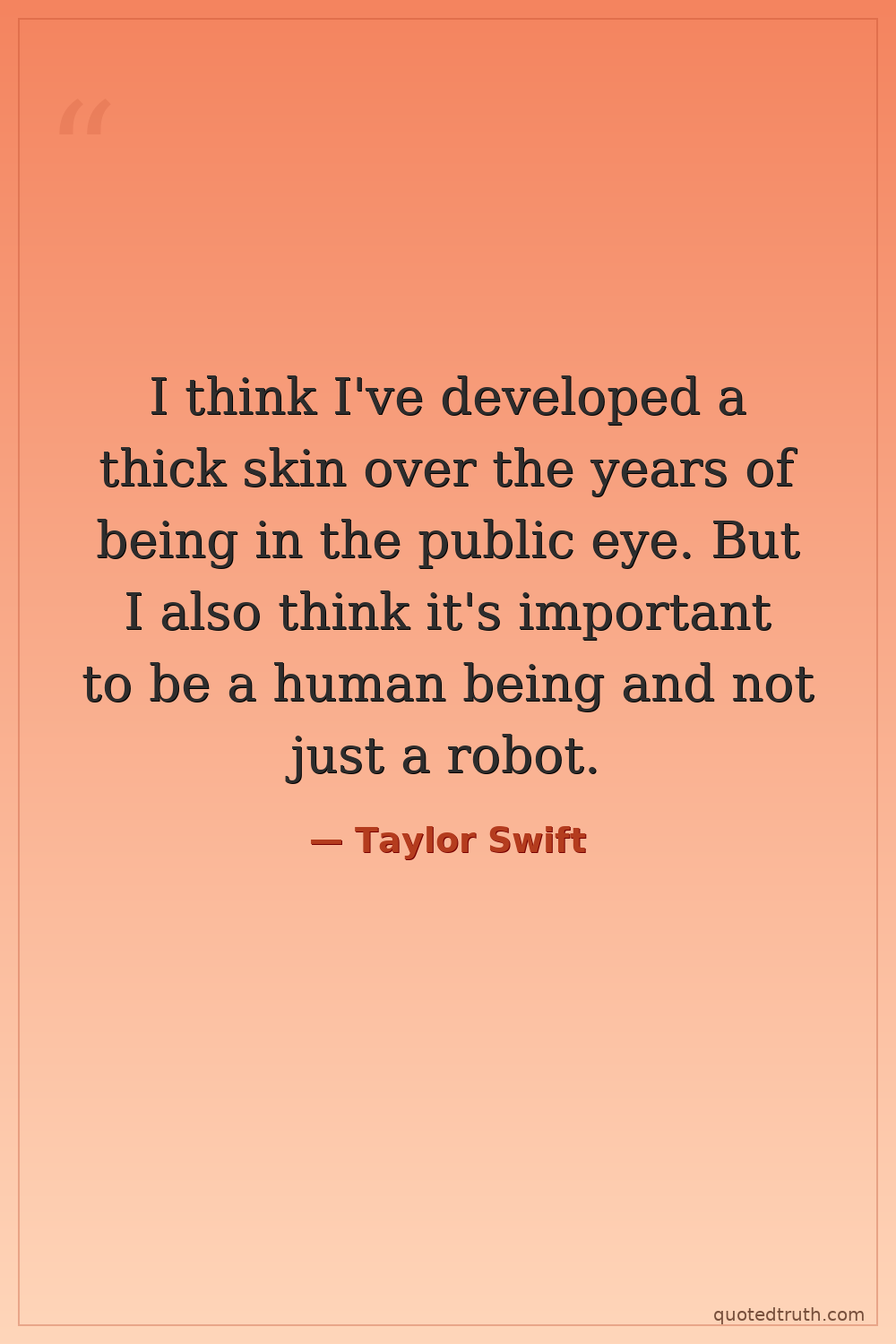 I think I've developed a thick skin over the years of being in the public eye. But I also think it's important to be a human being and not just a robot.