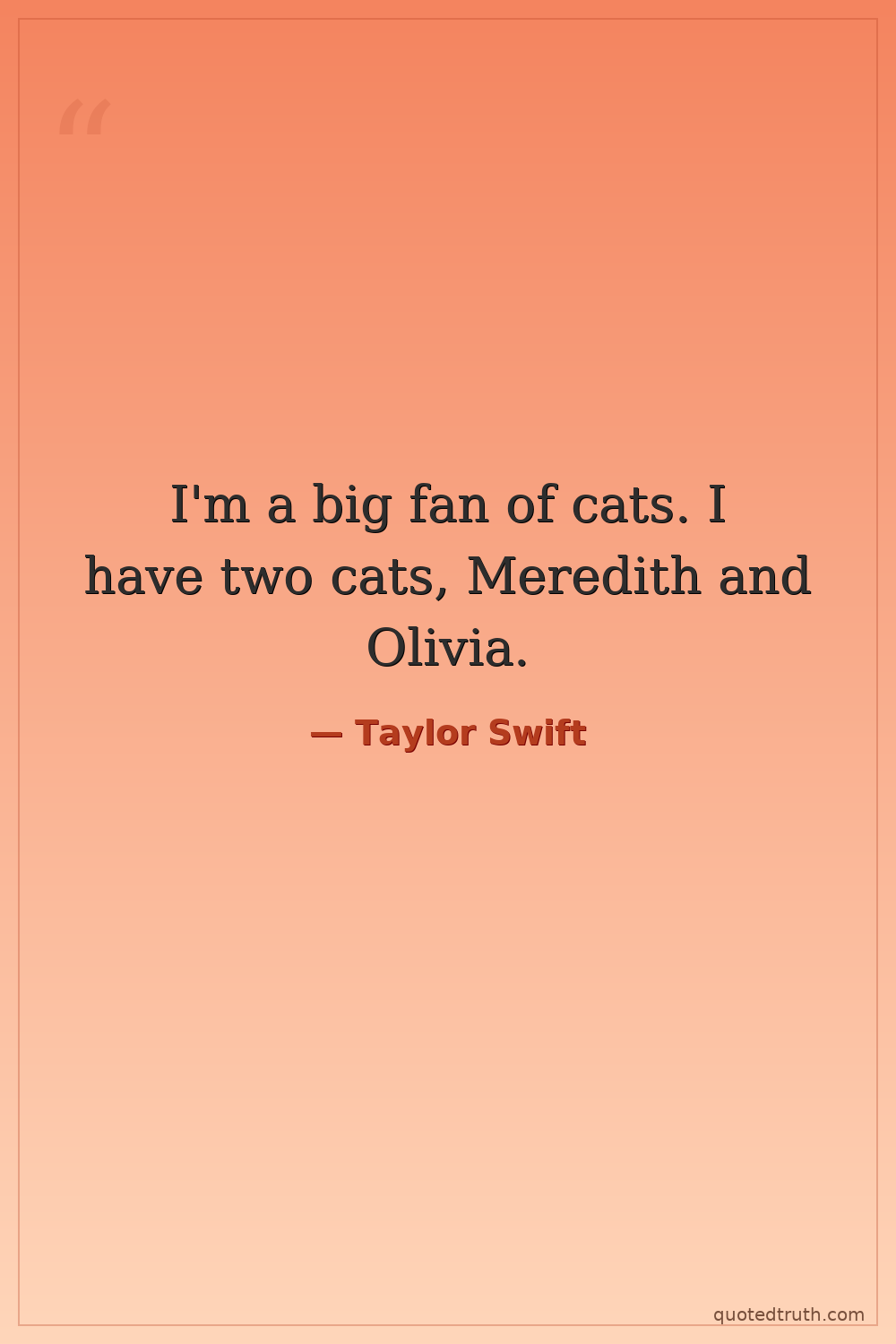 I'm a big fan of cats. I have two cats, Meredith and Olivia.