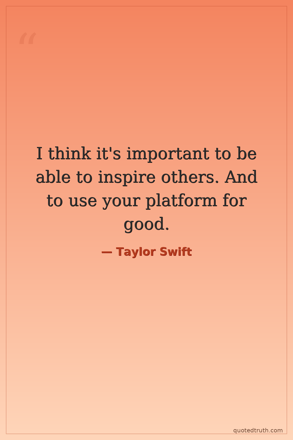 I think it's important to be able to inspire others. And to use your platform for good.