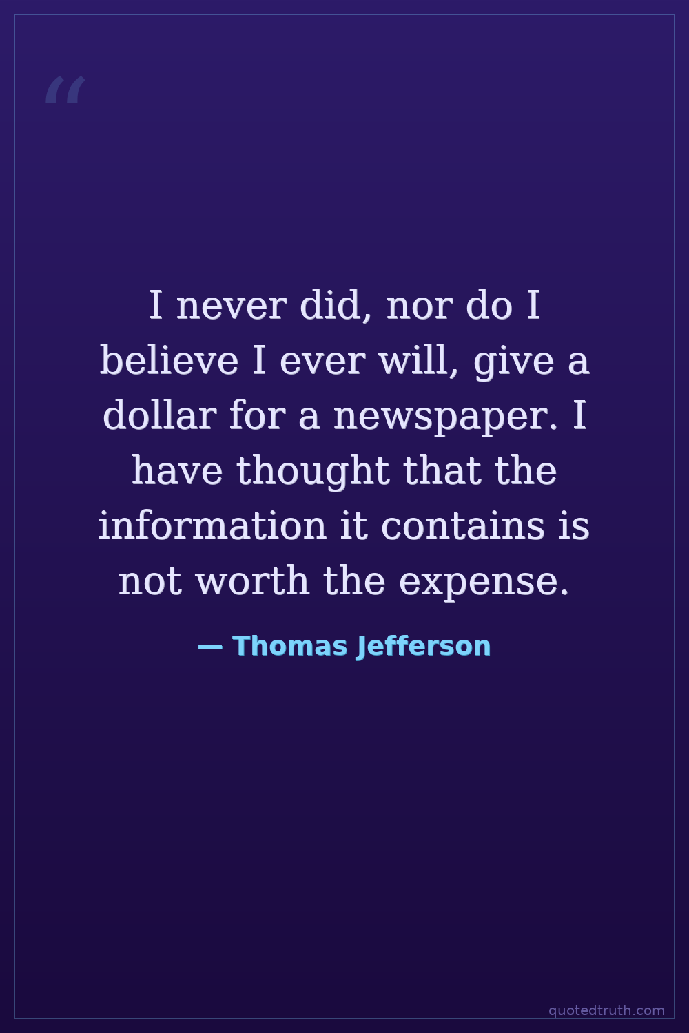 I never did, nor do I believe I ever will, give a dollar for a newspaper. I have thought that the information it contains is not worth the expense.