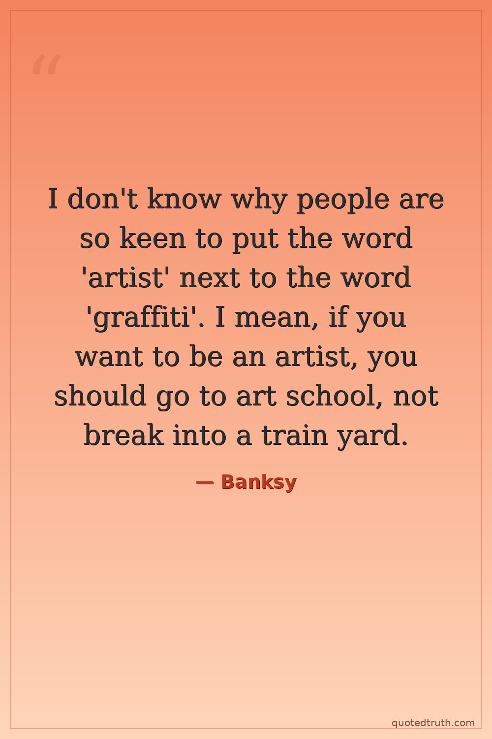 I don't know why people are so keen to put the word 'artist' next to the word 'graffiti'. I mean, if you want to be an artist, you should go to art school, not break into a train yard.
