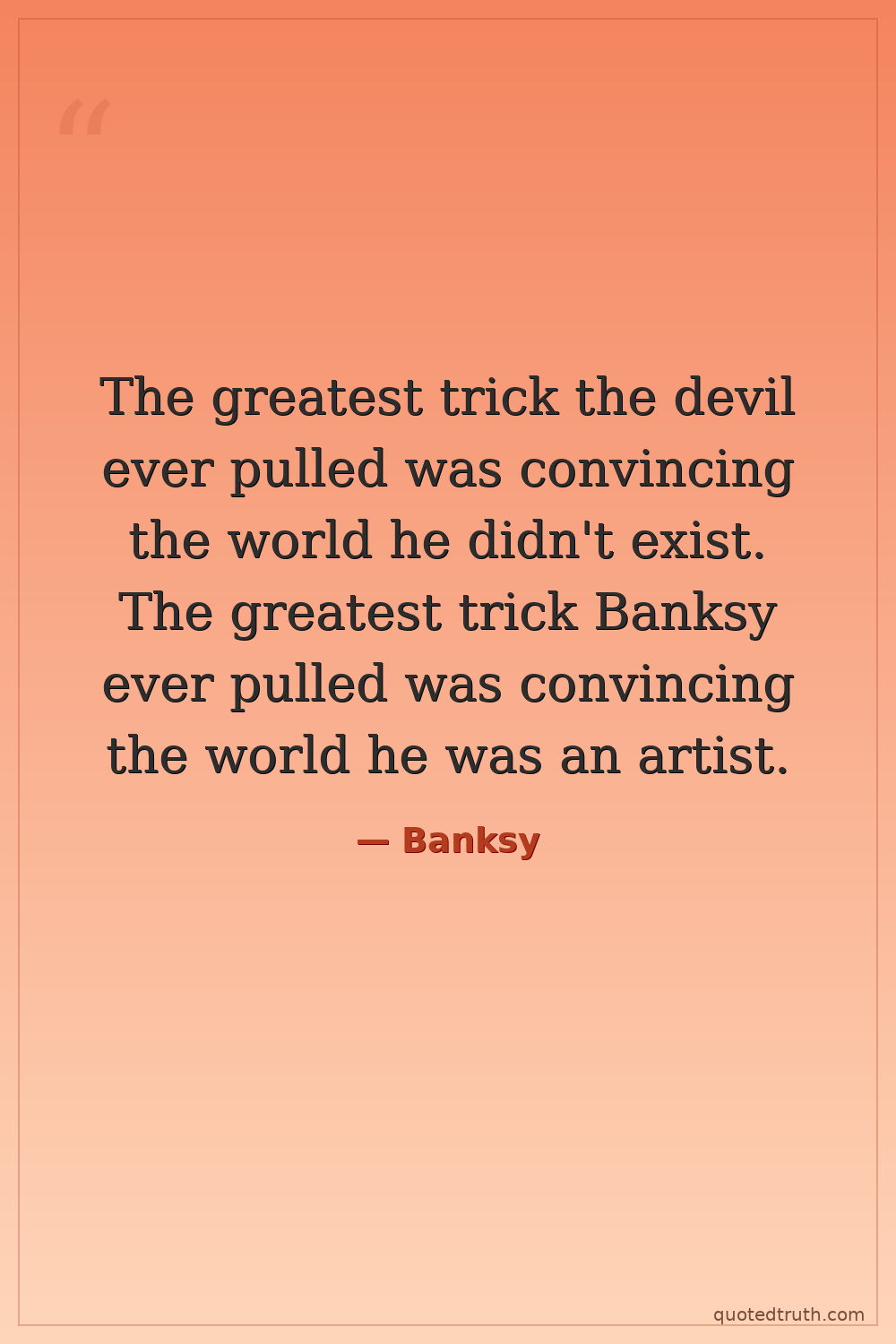 The greatest trick the devil ever pulled was convincing the world he didn't exist. The greatest trick Banksy ever pulled was convincing the world he was an artist.