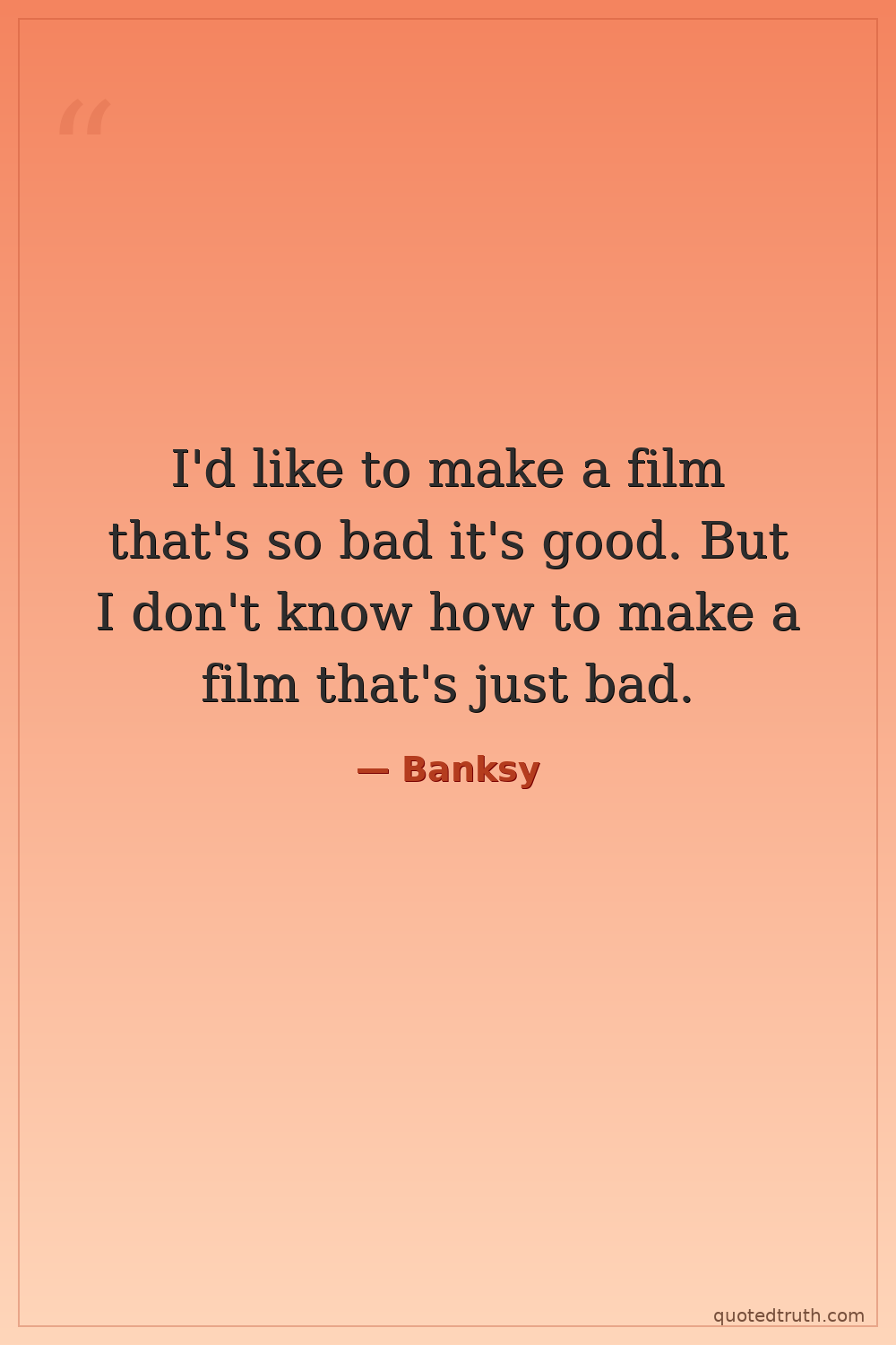 I'd like to make a film that's so bad it's good. But I don't know how to make a film that's just bad.