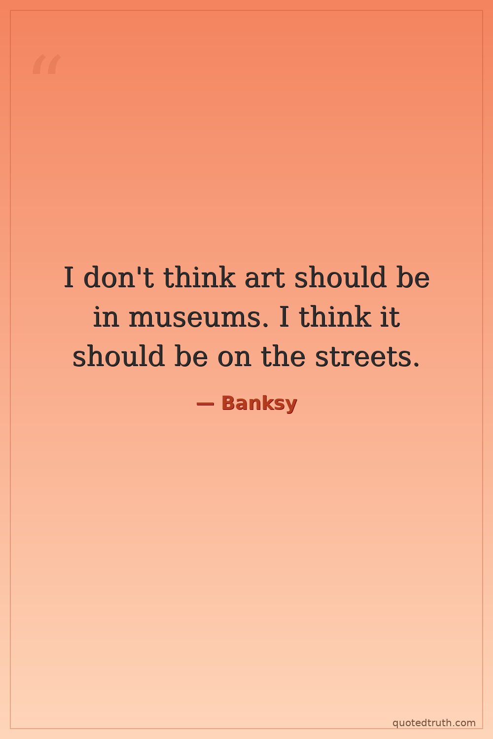 I don't think art should be in museums. I think it should be on the streets.
