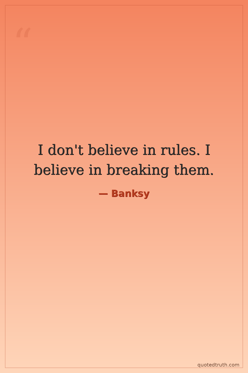 I don't believe in rules. I believe in breaking them.