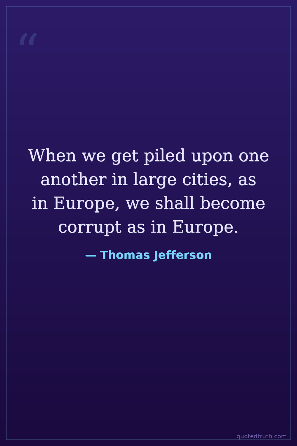 When we get piled upon one another in large cities, as in Europe, we shall become corrupt as in Europe.