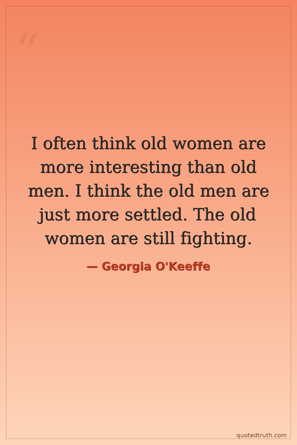 I often think old women are more interesting than old men. I think the old men are just more settled. The old women are still fighting.