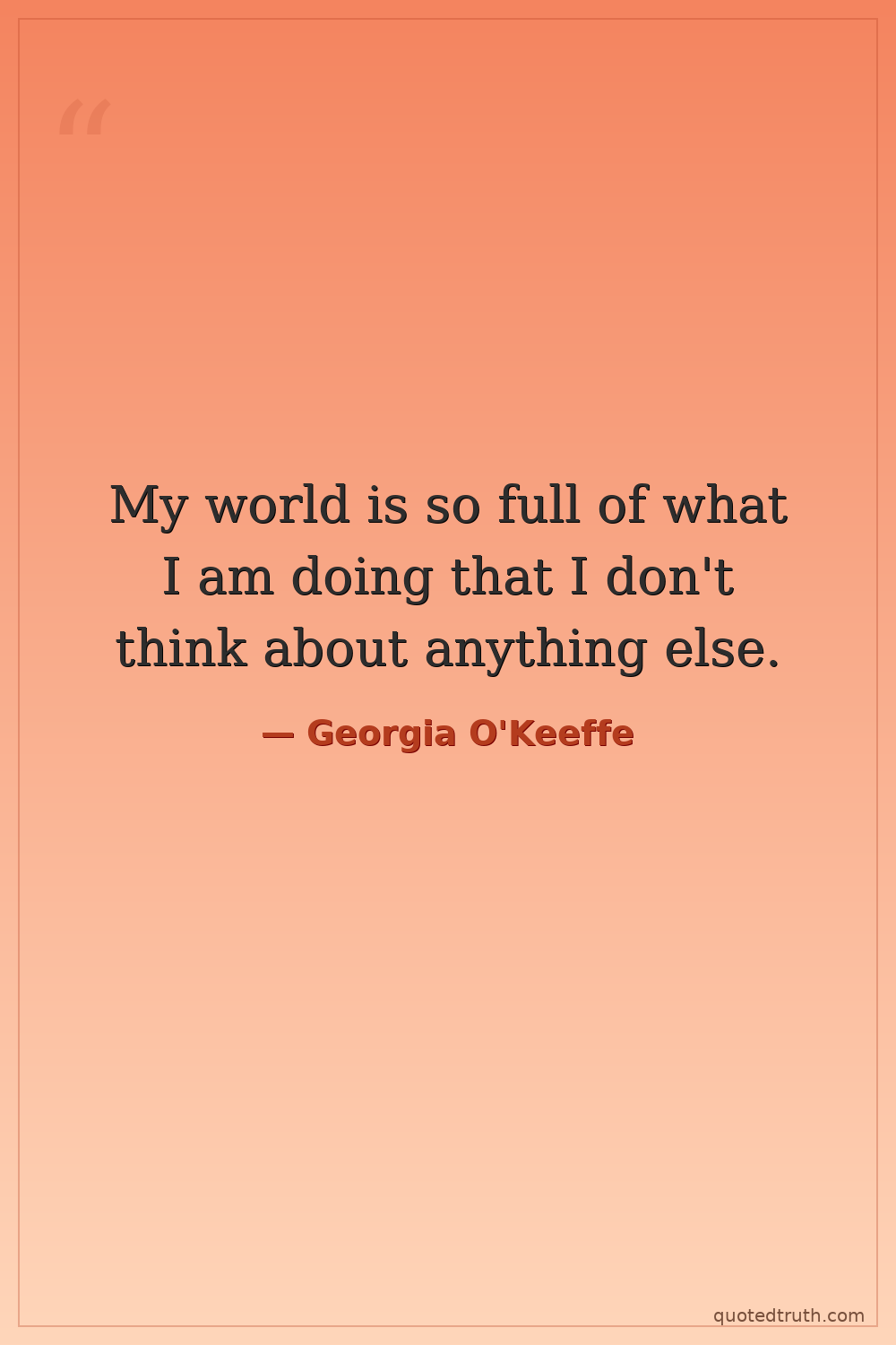 My world is so full of what I am doing that I don't think about anything else.