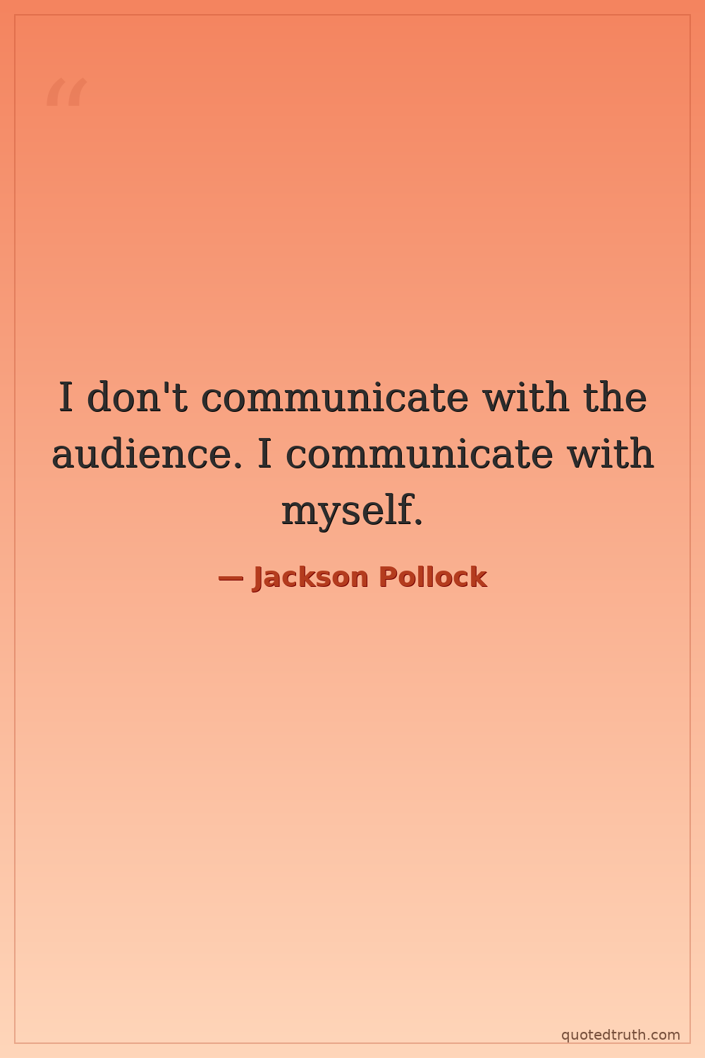 I don't communicate with the audience. I communicate with myself.
