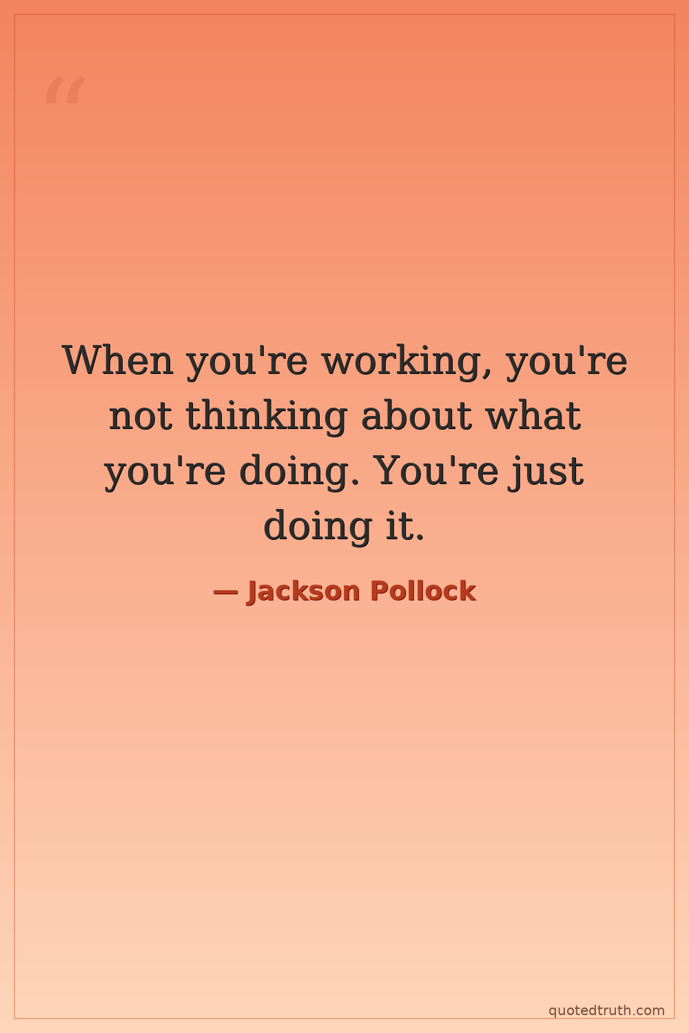 When you're working, you're not thinking about what you're doing. You're just doing it.