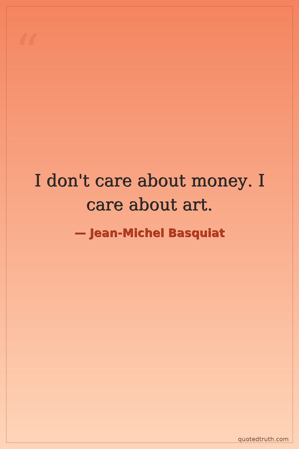 I don't care about money. I care about art.