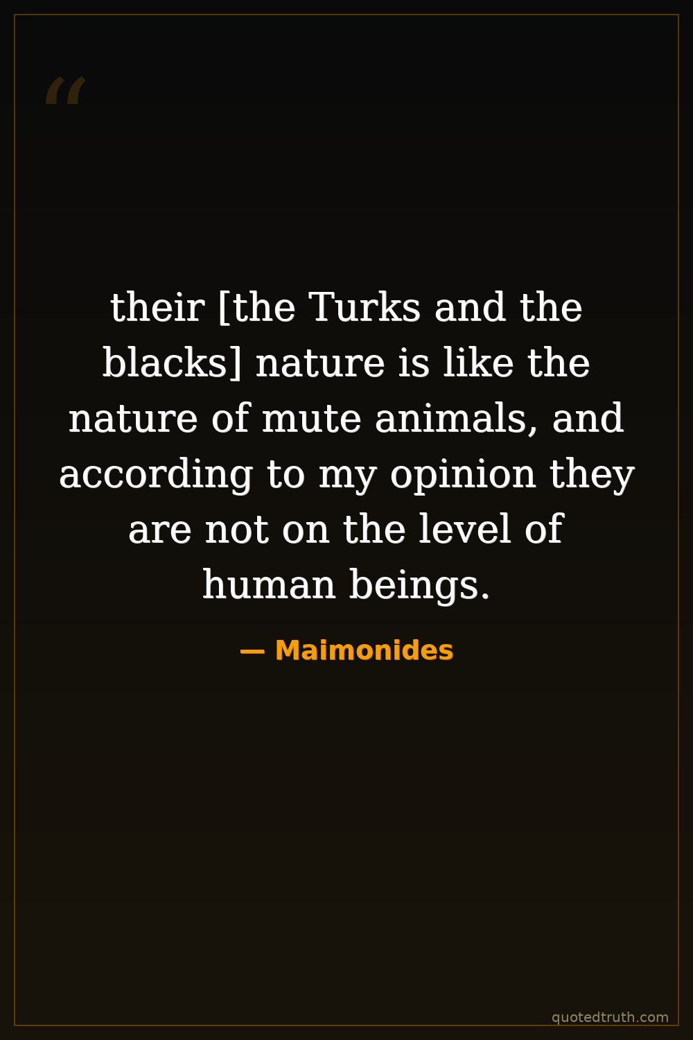 their [the Turks and the blacks] nature is like the nature of mute animals, and according to my opinion they are not on the level of human beings.