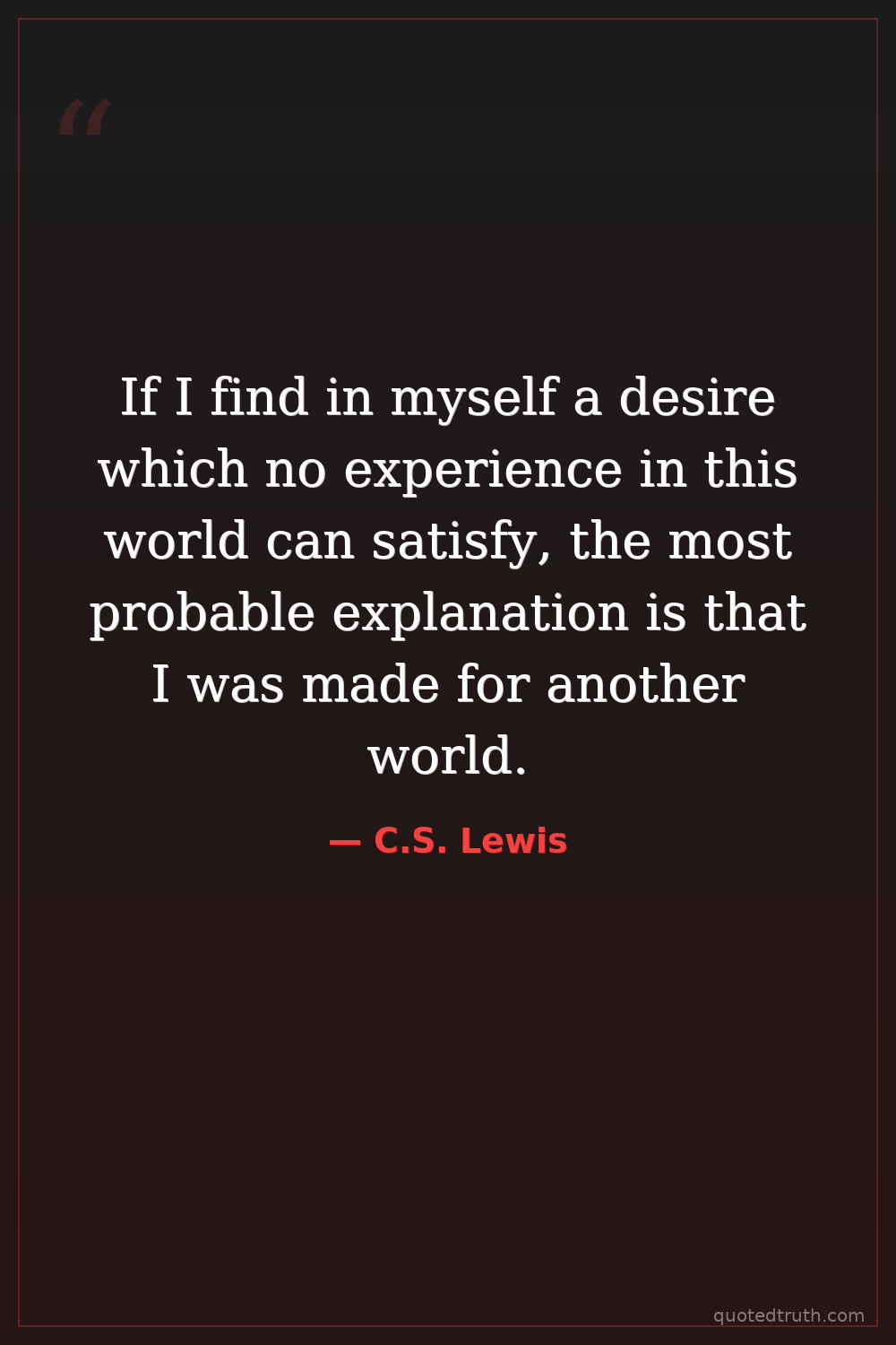 If I find in myself a desire which no experience in this world can satisfy, the most probable explanation is that I was made for another world.