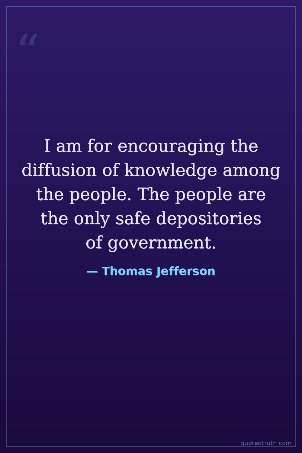 I am for encouraging the diffusion of knowledge among the people. The people are the only safe depositories of government.