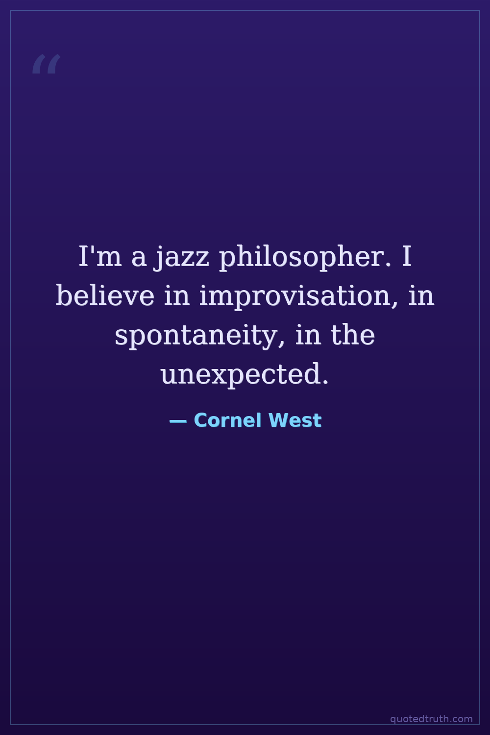 I'm a jazz philosopher. I believe in improvisation, in spontaneity, in the unexpected.