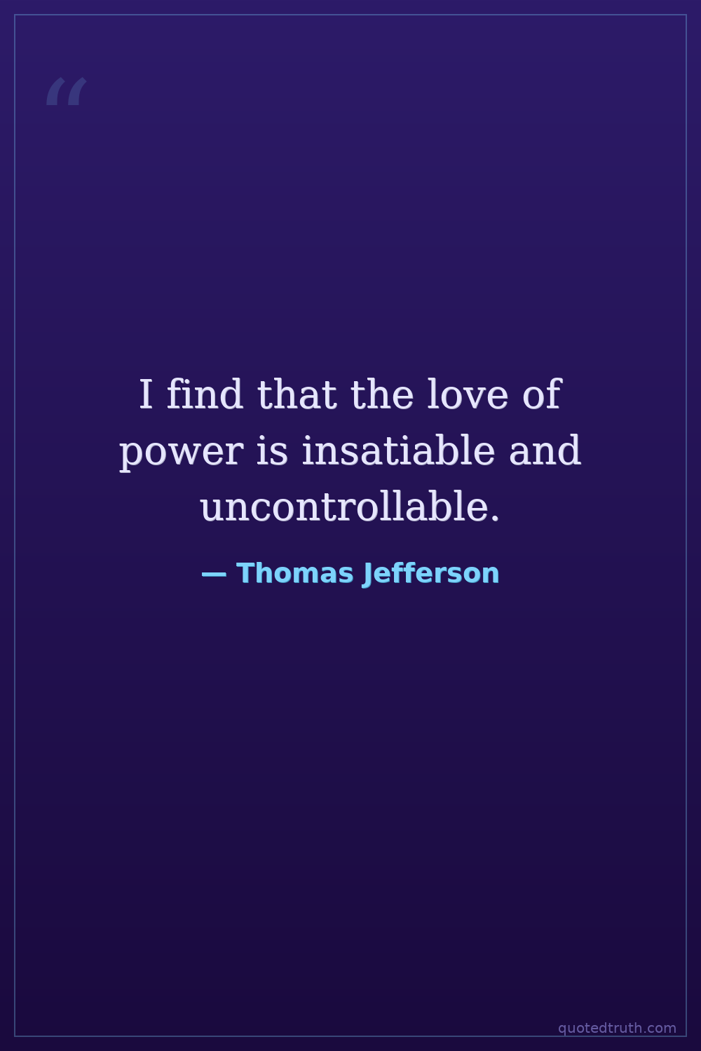 I find that the love of power is insatiable and uncontrollable.