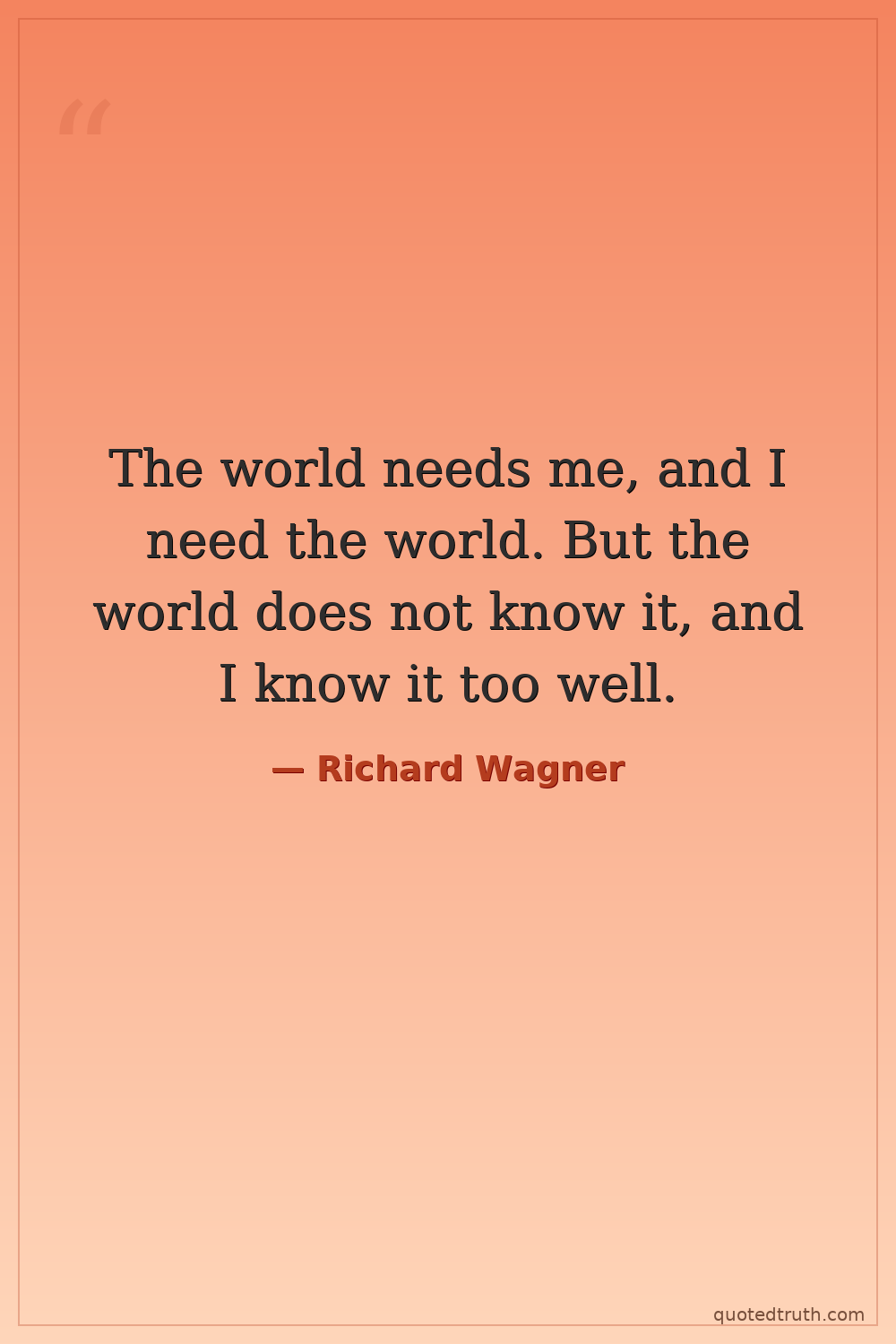 The world needs me, and I need the world. But the world does not know it, and I know it too well.