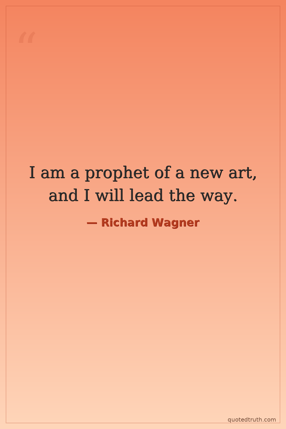 I am a prophet of a new art, and I will lead the way.