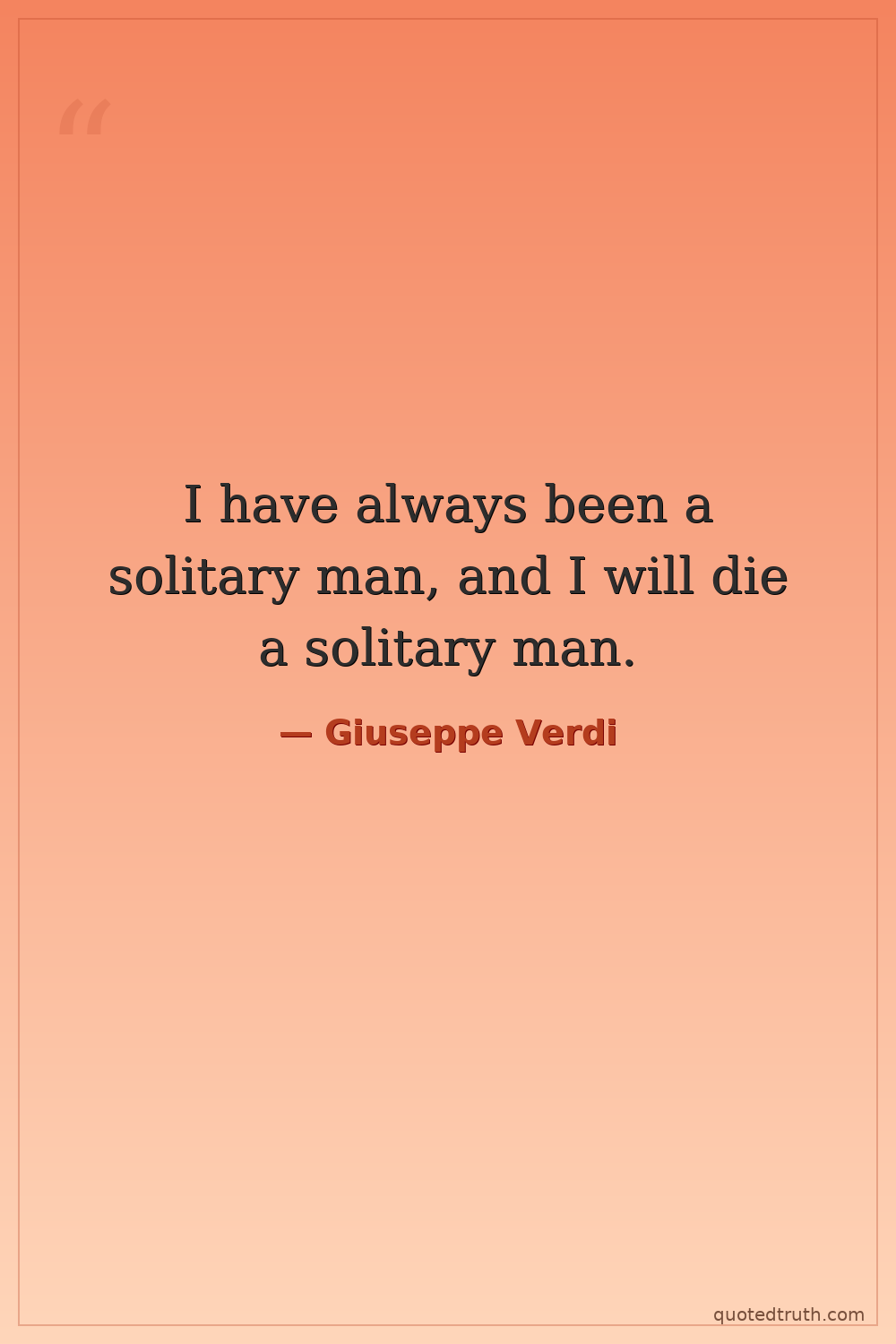 I have always been a solitary man, and I will die a solitary man.
