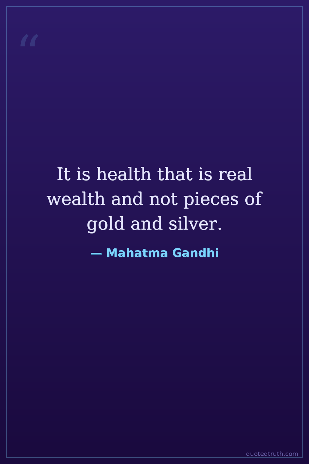 It is health that is real wealth and not pieces of gold and silver.