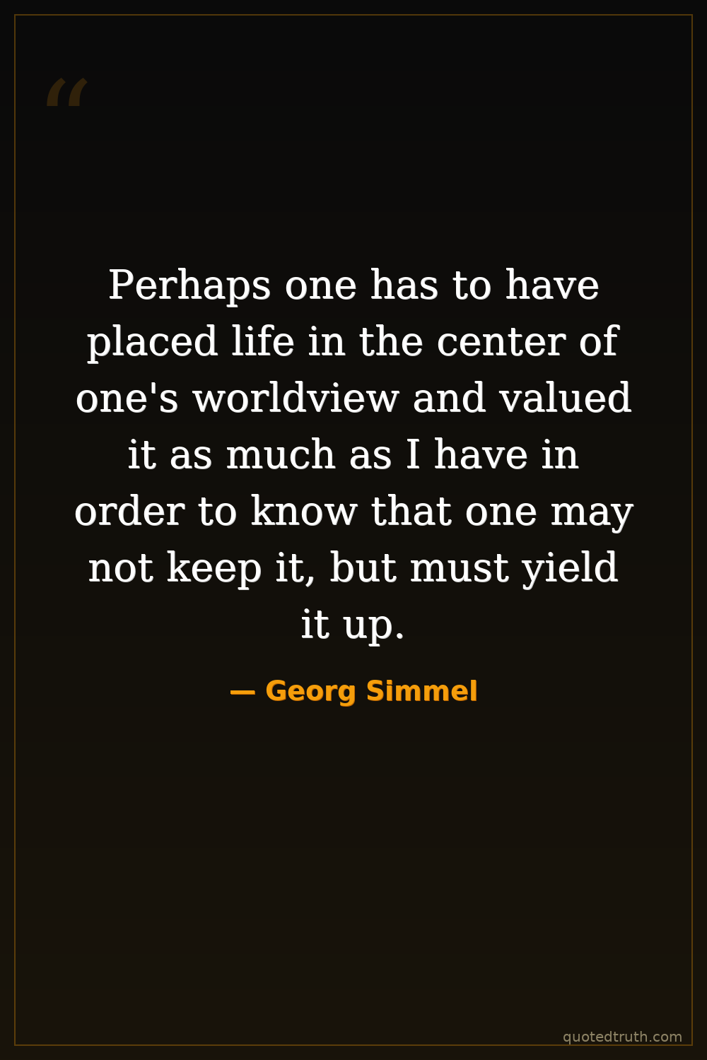 Perhaps one has to have placed life in the center of one's worldview and valued it as much as I have in order to know that one may not keep it, but must yield it up.