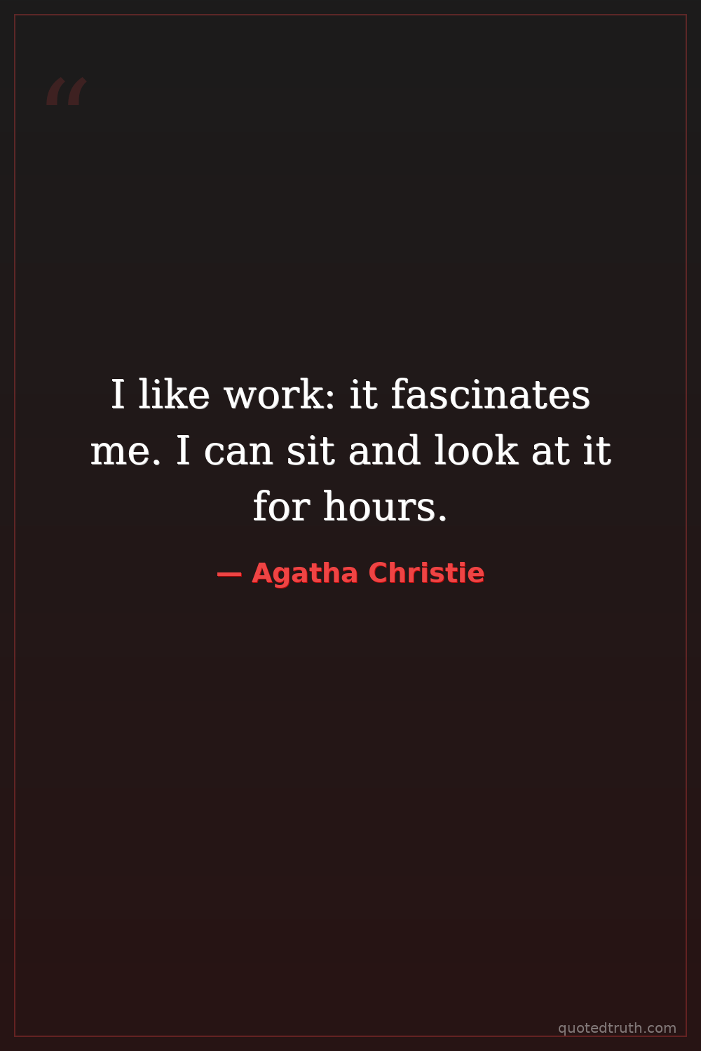 I like work: it fascinates me. I can sit and look at it for hours.