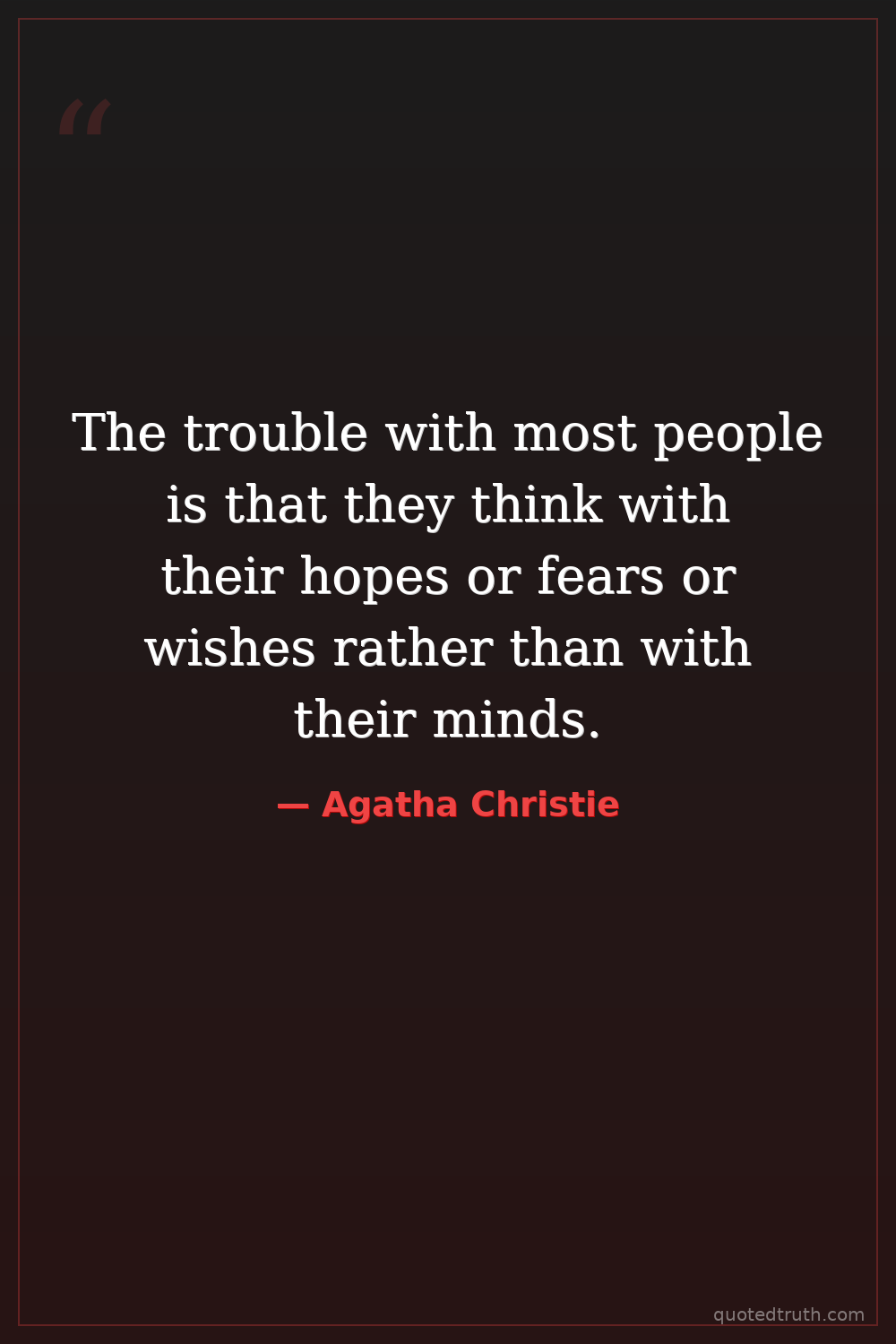 The trouble with most people is that they think with their hopes or fears or wishes rather than with their minds.