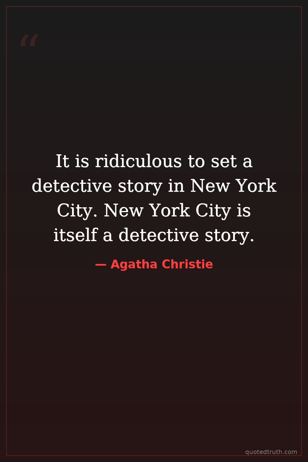 It is ridiculous to set a detective story in New York City. New York City is itself a detective story.