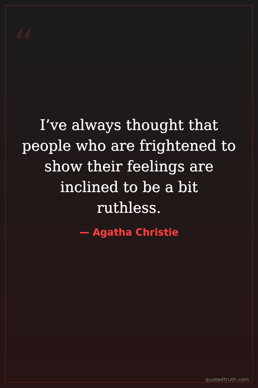 I’ve always thought that people who are frightened to show their feelings are inclined to be a bit ruthless.