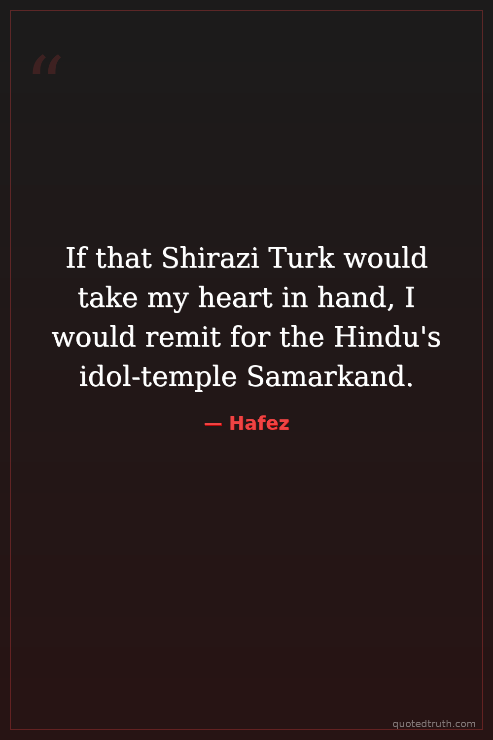 If that Shirazi Turk would take my heart in hand, I would remit for the Hindu's idol-temple Samarkand.
