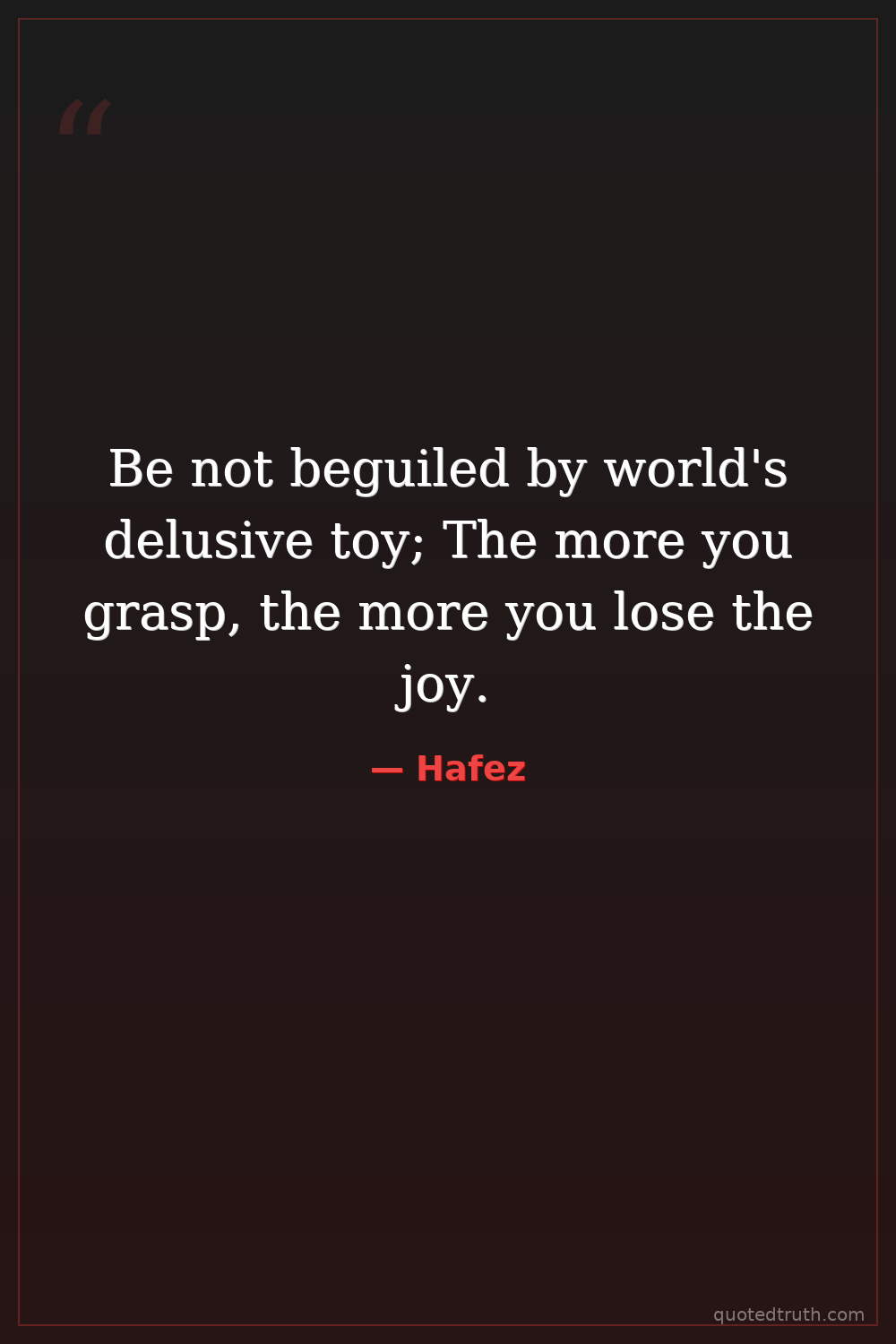 Be not beguiled by world's delusive toy; The more you grasp, the more you lose the joy.