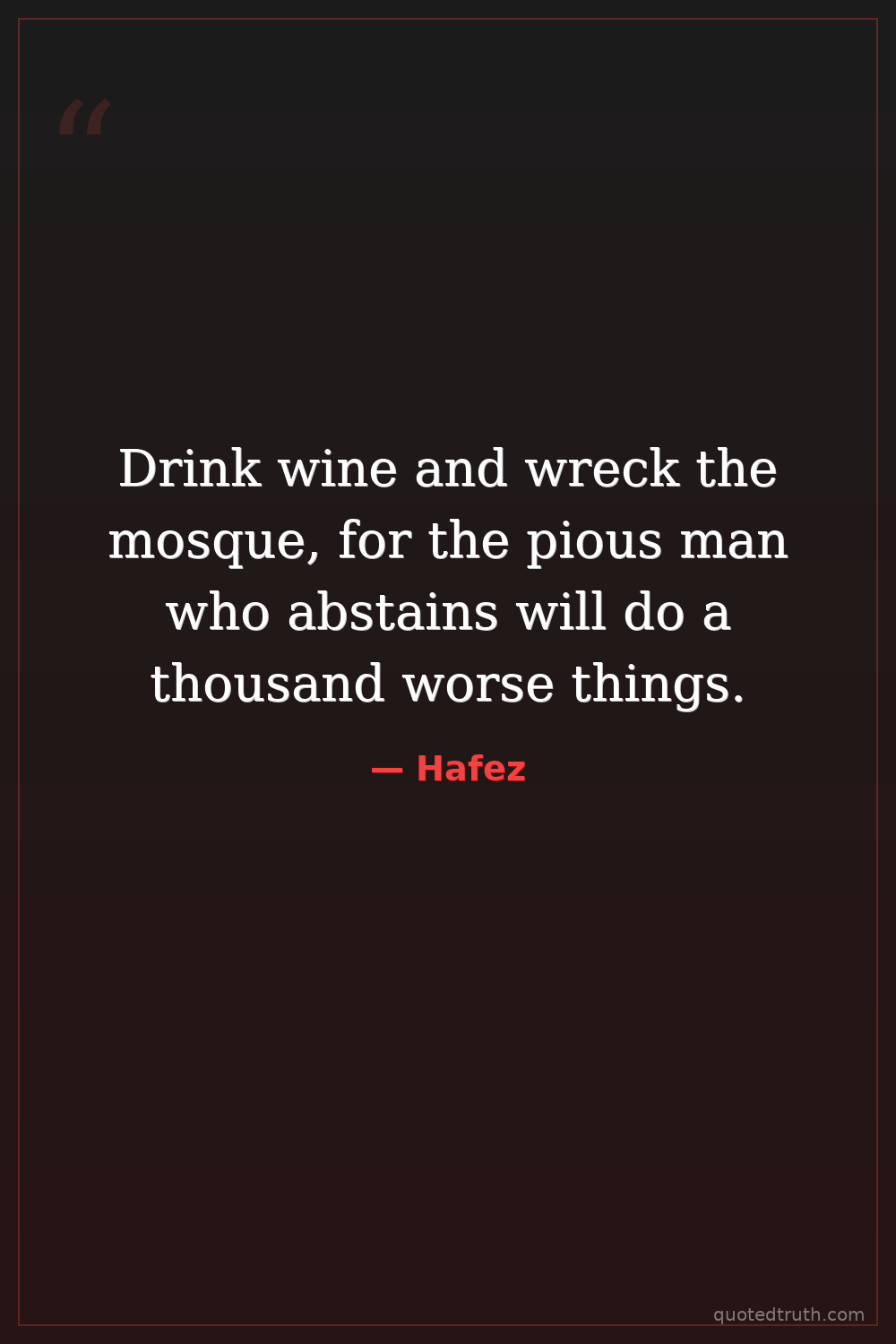 Drink wine and wreck the mosque, for the pious man who abstains will do a thousand worse things.